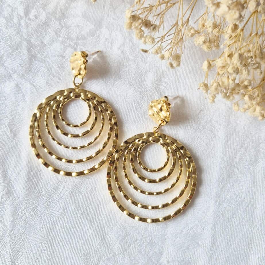 • – des clips dorées à l’or fin de 18 mm de diamètre, martelés